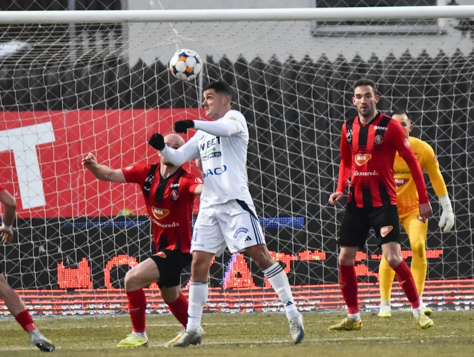 Ioan Andrei Vasile Dumiter si Attila Csürös in meciul de fotbal dintre FK Csikszereda Miercurea Ciuc si FC Botosani, contand pentru Superliga Superbet, desfasurat pe Stadionul Municipal din Miercurea Ciuc, duminica 18 ianuarie 2026. © FOTO:Zoltan Pal/SPORT PICTURES