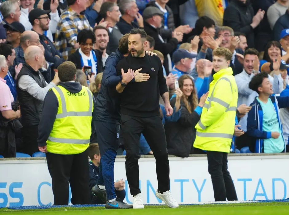Roberto De Zerbi manager of Brighton celebrates the fourth goal