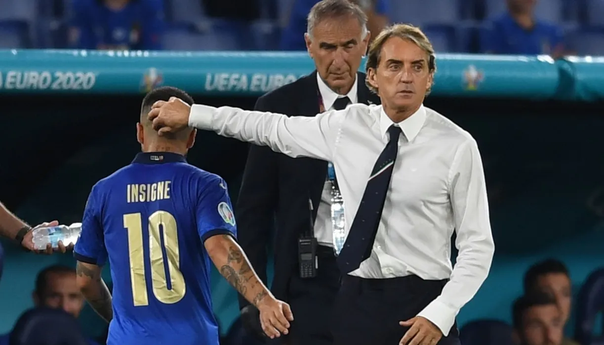 Lorenzo Insigne (Italy)Roberto Mancini Coach (Italy) during the Uefa "European Championship 2020" match between Italy 3-0 Switzerland at