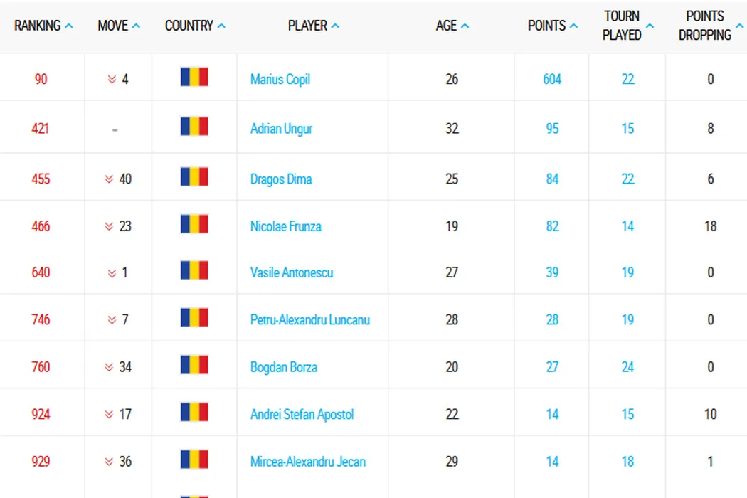 Rocadă în clasamentul ATP: cine este acum „locotenentul” lui Marius Copil și noul număr doi între români, la simplu