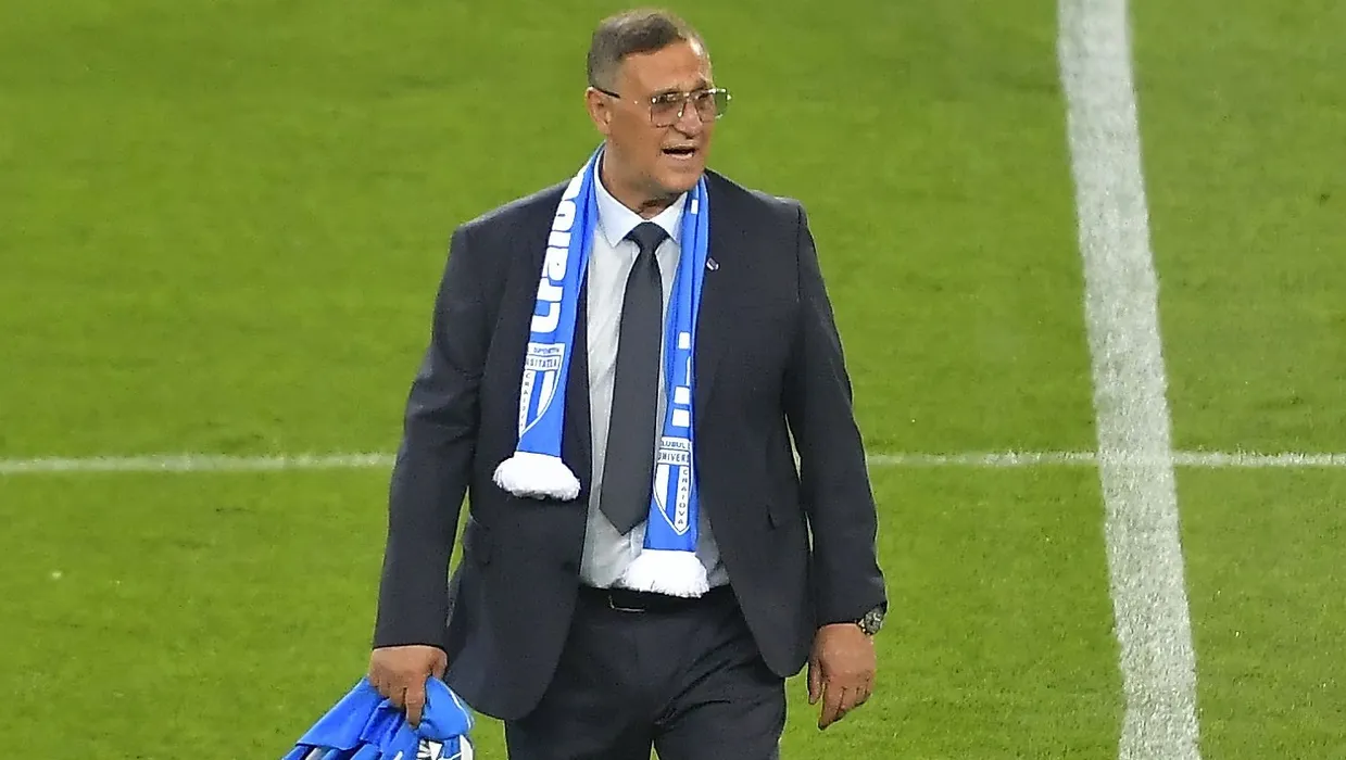 Rodion Gorun Camataru da lovitura de start la meciul de fotbal dintre Universitatea Craiova si FCSB, contand pentru Play-off-ul Superligii Superbet, desfasurat pe Stadionul Ion Oblemenco din Craiova, duminica 30 aprilie 2023. © FOTO:Razvan Pasarica/SPORT PICTURES