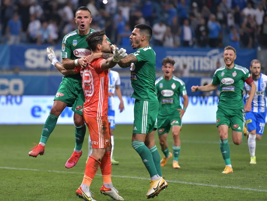 Roland Csaba Niczuly se bucura dupa ce a aparat un penalty alaturi de Adnan Aganovic si Hugo Felipe Goncalves Martins De Sousa in meciul de fotbal dintre Universitatea Craiova si Sepsi OSK Sfantu Gheorghe, contand pentru Liga 1 Casa Pariurilor, desfasurat pe Stadionul Ion Oblemenco din Craiova, luni 13 septembrie 2021. © FOTO:Razvan Pasarica/SPORT PICTURES