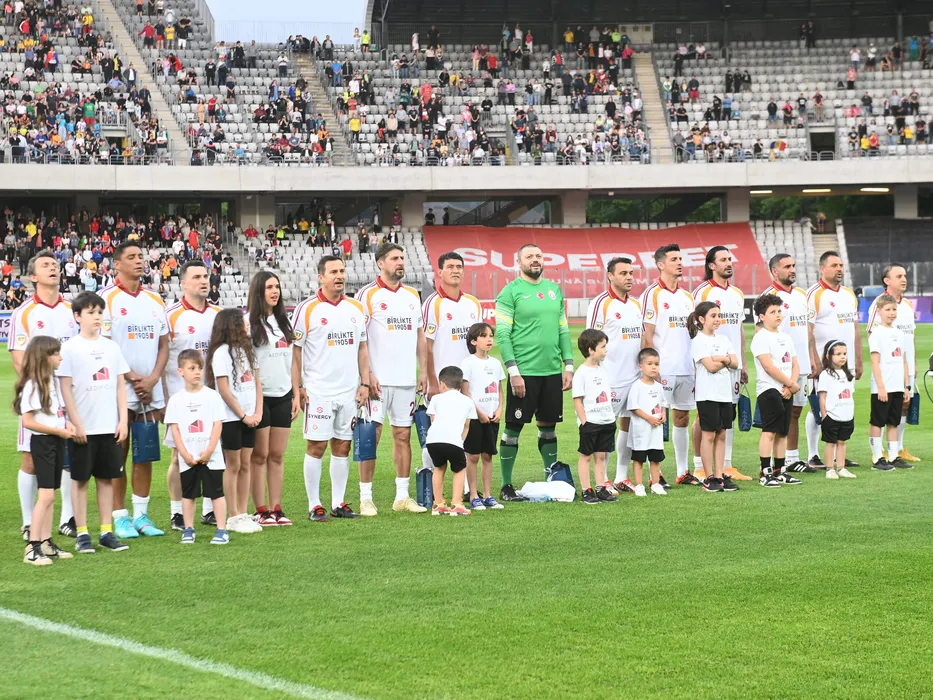 Fotbalistii din echipa Galatasaray Legends la startul meciului amical de fotbal dintre All Stars Romania si Galatasaray Legends, din cadrul Sports Festival, desfasurat pe Cluj Arena din Cluj Napoca, vineri 2 iunie 2023. © FOTO:Razvan Pasarica/SPORT PICTURES