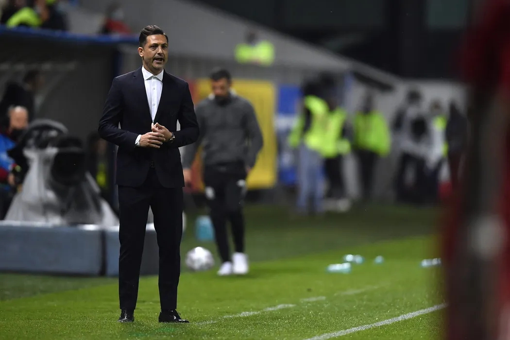 Mirel Radoi, antrenorul nationalei de fotbal a Romaniei, urmareste meciul amical contra selectionatei Georgiei, disputat pe stadionul Ilie Oana din Ploiesti, miercuri, 2 iunie 2021. ALEX NICODIM / MEDIAFAX FOTO