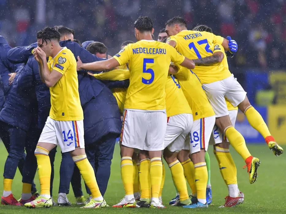 Bucurie a fotbalistilor romani dupa un gol marcat cu Ianis Hagi si Claudiu Keseru in meciul de fotbal dintre Romania si Armenia, din cadrul Preliminariilor Campionatului Mondial 2022, desfasurat pe Stadionul Steaua din Bucuresti, luni 11 octombrie 2021. © FOTO:Razvan Pasarica/SPORT PICTURES