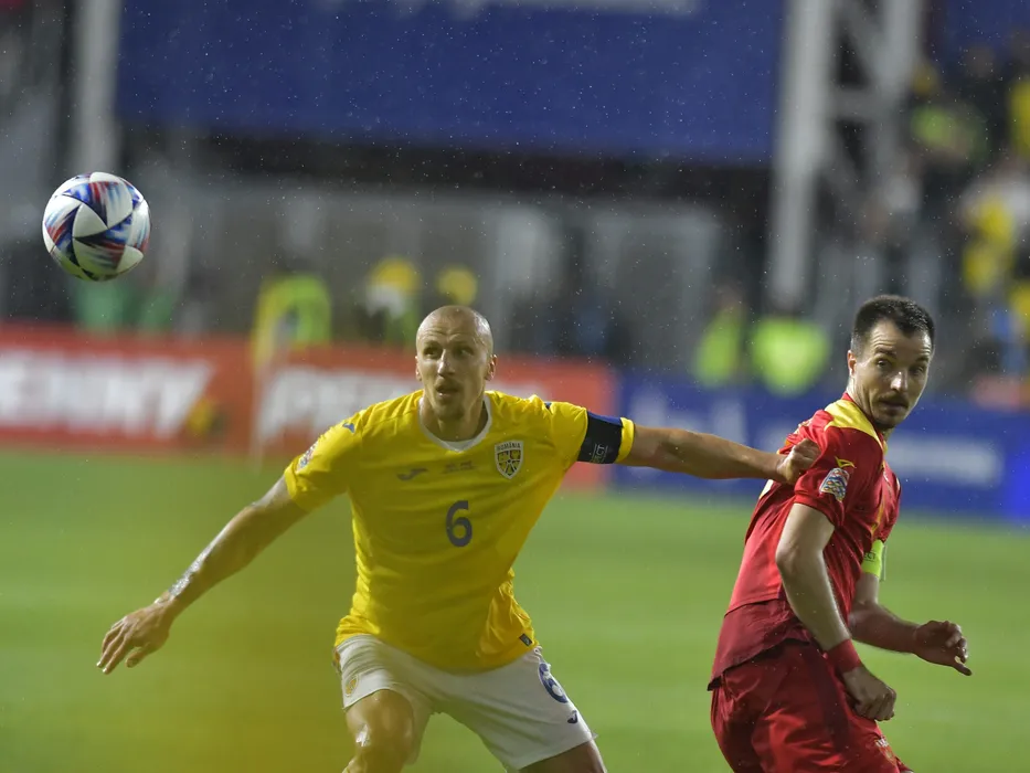 Vlad Chiriches si Žarko Tomašević la meciul de fotbal dintre Romania si Muntenegru, contand pentru Liga Natiunilor, desfasurat pe Stadionul Rapid Giulesti din Bucuresti, marti 14 iunie 2022. © FOTO:Razvan Pasarica/SPORT PICTURES