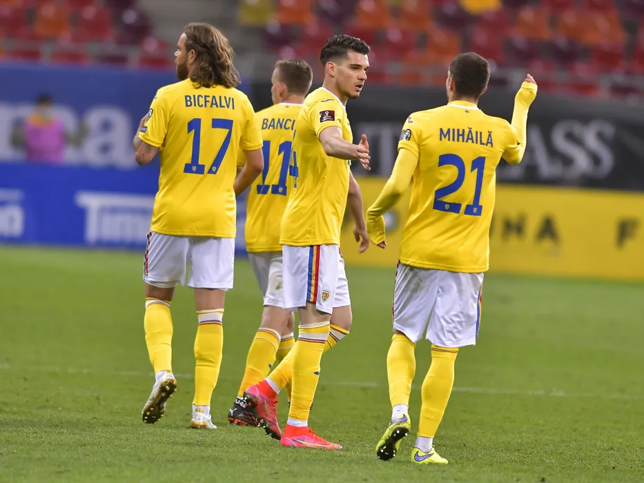 Ianis Hagi si Valentin Mihaila se bucura in meciul de fotbal dintre Romania si Macedonia de Nord, din cadrul Preliminariilor Campionatului Mondial 2022, desfasurat fara spectatori pe Arena Nationala din Bucuresti, joi 25 martie 2021. © FOTO:Razvan Pasarica/SPORT PICTURES