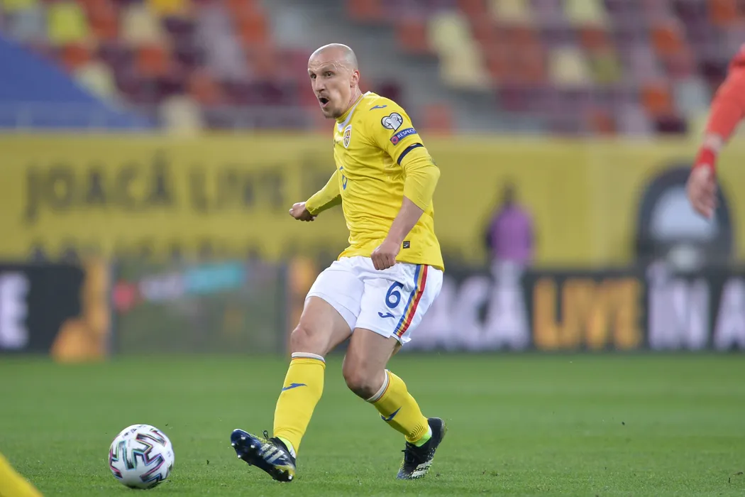 Reprezentativele Romaniei (echipament galben) si Macedoniei de Nord s-au intalnit intr-o partida contand pentru preliminariile CM 2022, joi 25 noiembrie 2021, pe Arena Nationala din Bucuresti. ALEXANDRU DOBRE / MEDIAFAX FOTO