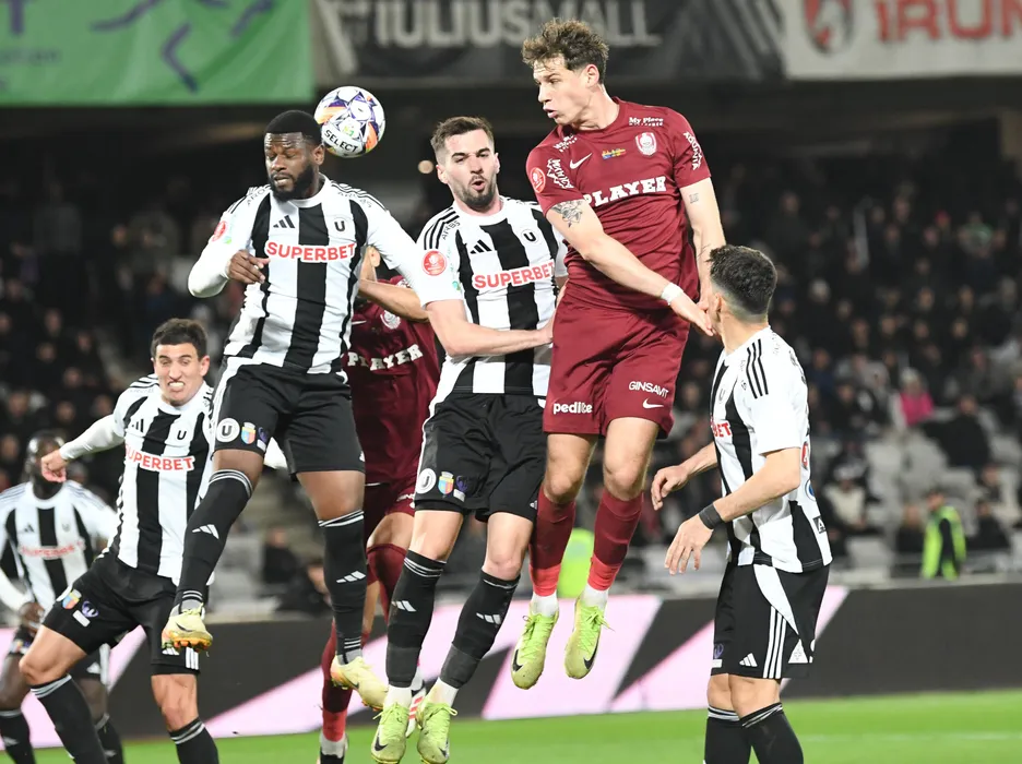 Matei Christian Ilie si Mamadou Thiam, Dorin Marian Codrea, Lucas Gabriel Masoero in meciul de fotbal dintre FC Universitatea Cluj si FC CFR 1907 Cluj, contand pentru Superliga Superbet, desfasurat pe Stadionul Cluj Arena din Cluj-Napoca, luni 31 martie 2025. © FOTO: Flaviu Buboi/SPORT PICTURES