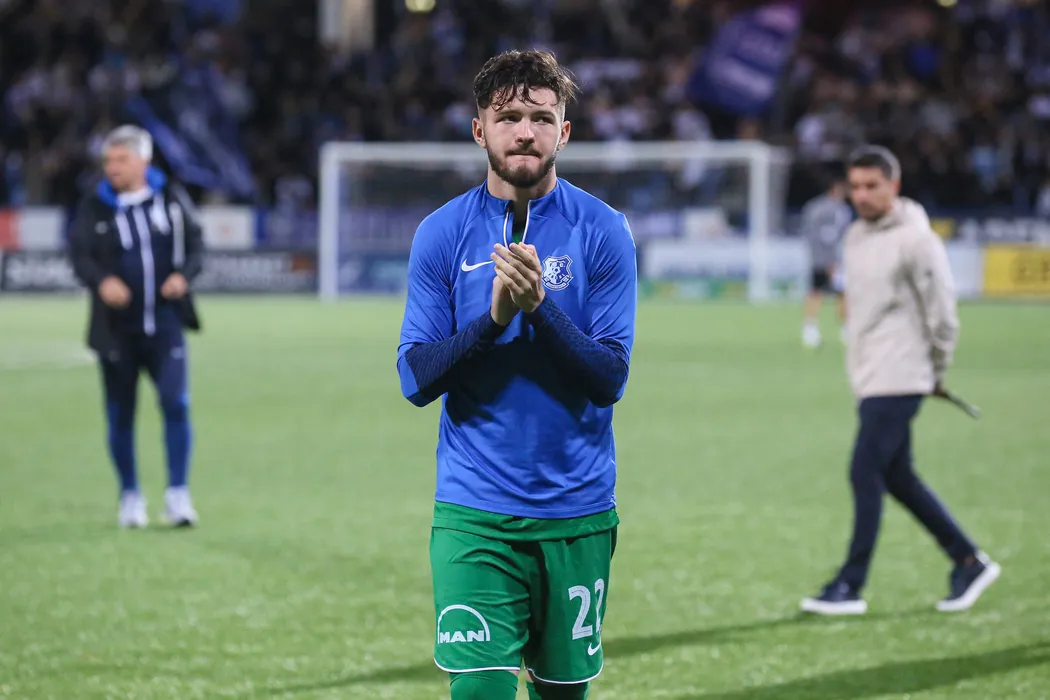 Dan Sirbu saluta galeria dupa meciul de fotbal dintre HJK Helsinki si Farul Constanta, contand pentru UEFA Europa Conference League, desfasurat pe Helsinki Football Stadium din Helsinki, joi 31 august 2023. © FOTO:Antonio Vasile/SPORT PICTURES