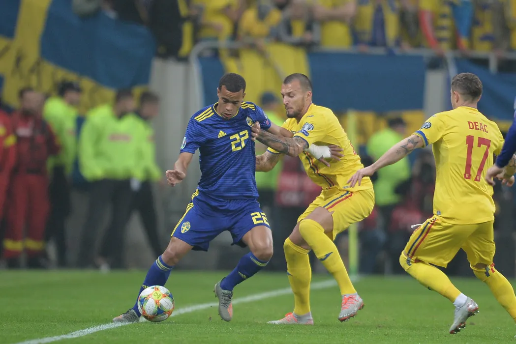 Robin Quaison (S), de la nationala Suediei, suteaza in timpul meciului de fotbal contra selectionatei Romaniei, din preliminariile EURO 2020, disputat pe Arena Nationala din Bucuresti, vineri, 15 noiembrie 2019. ALEXANDRU DOBRE / MEDIAFAX FOTO