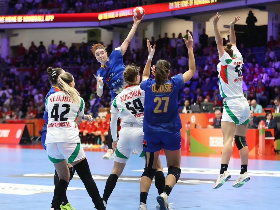 Alicia-Maria Gogîrlă în meciul de handbal dintre Ungaria și România, contând pentru EHF EURO 2024, desfășurat in Sala Sporturilor Fönix Csarnok din Debrecen, duminică 8 decembrie 2024. © FOTO: Sorin PANĂ/SPORT PICTURES