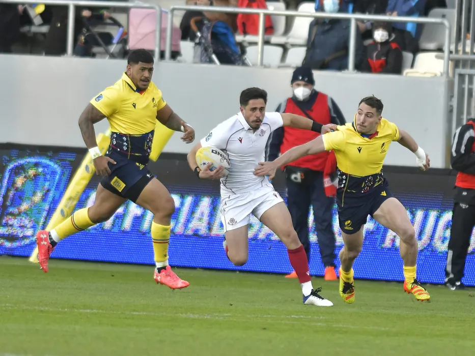 Jason Tomane si Ionut Dumitru in meciul de rugby dintre Romania si Georgia, din cadrul Rugby Europe Championship, desfasurat pe Stadionul National Arcul de Triumf din Bucuresti, sambata 12 martie 2022. © FOTO:Razvan Pasarica/SPORT PICTURES
