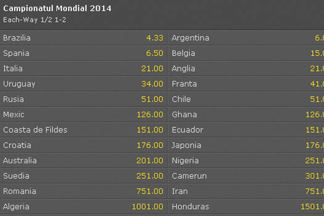 România, printre cele mai slab cotate! Casele de pariuri au stabilit ordinea favoritelor la câștigarea CM 2014