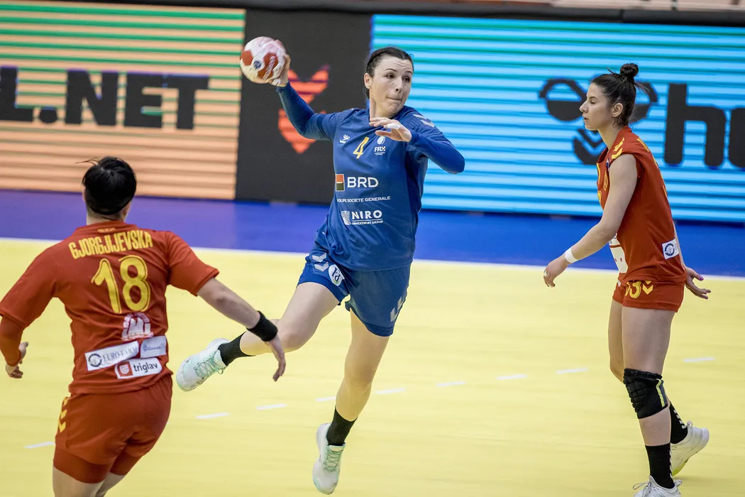 Meciul de handbal feminin dintre Romaniai si Macedonia, contand pentru play-off-ul de calificare la Campionatul Mondial, desfasurat fara spectatori in Sala Dinamo din Bucuresti, sambata 17 aprilie 2021. © FOTO:Sorin Pana/SPORT PICTURES