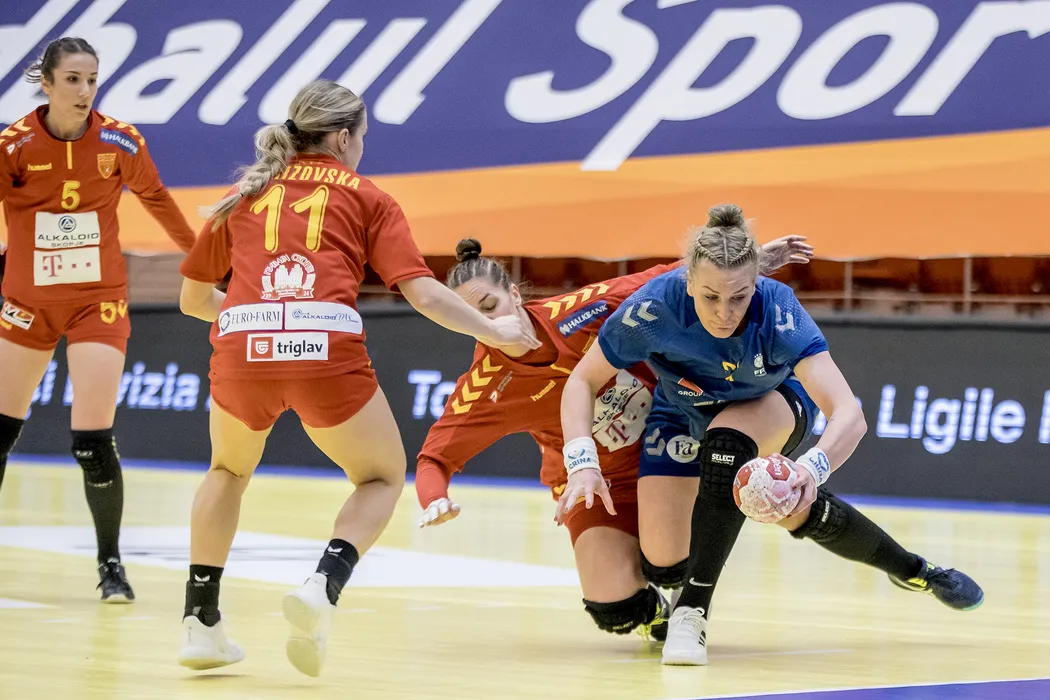 Meciul de handbal feminin dintre Romaniai si Macedonia, contand pentru play-off-ul de calificare la Campionatul Mondial, desfasurat fara spectatori in Sala Dinamo din Bucuresti, sambata 17 aprilie 2021. © FOTO:Sorin Pana/SPORT PICTURES