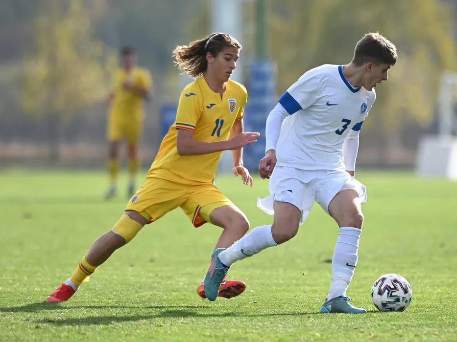 Alexandru Constantin Stoian si Jevgeni Tšernjakov in meciul de fotbal dintre Romania U17 si Estonia U17, contand pentru Turneul de calificare la Campionatul European 2024, desfasurat la Centrul National de Fotbal de la Buftea, marti 21 noiembrie 2023. © FOTO:Razvan Pasarica/SPORT PICTURES
