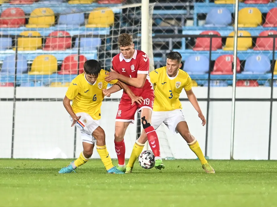 Alin Boțogan, Faustas Steponavičius si Adrian Grigore-Huideș in meciul de fotbal dintre Romania U19 si Lituania U19, din cadrul turneului de calificare pentru Campionatul European 2023, desfasurat pe Stadionul Anghel Iordanescu din Voluntari, sambata 24 septembrie 2022. © FOTO:Razvan Pasarica/SPORT PICTURES