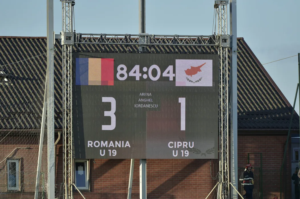 Reultat inregistrat pe tabela de marcaj in meciul amical de fotbal dintre Romania U19 si Cipru U19, desfasurat pe Stadionul Anghel Iordănescu din Voluntari, sambata 11 octombrie 2025. © FOTO:Simion Mechno/SPORT PICTURES