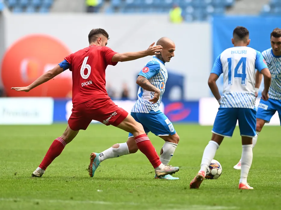 Ionut Alexandru Mitrita si Victor Robert Dican in meciul de fotbal dintre Universitatea Craiova si FC Botosani, contand pentru Superliga Superbet, desfasurat pe Stadionul Ion Oblemenco din Craiova, duminica 1 octombrie 2023. © FOTO:Razvan Pasarica/SPORT PICTURES