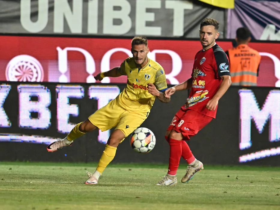 Mihnea Gabriel Radulescu si Dumitru Daniel Benzar in meciul de fotbal dintre Petrolul Ploiesti si Gloria Buzau, din cadrul Superligii Superbet, desfasurat pe Stadionul Ilie Oana din Ploiesti, luni 15 iulie 2024. © FOTO:Razvan Pasarica/SPORT PICTURES
