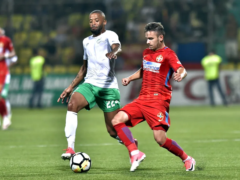 Romario Kortzorg si Daniel Benzar in meciul de fotbal dintre Concordia Chiajna si FC Steaua Bucuresti, contand pentru Liga 1 Betano si desfasurat pe stadionul comunal Concordia in Chiajna, duminica 6 august 2017. Razvan Pasarica/SPORT PICTURES
