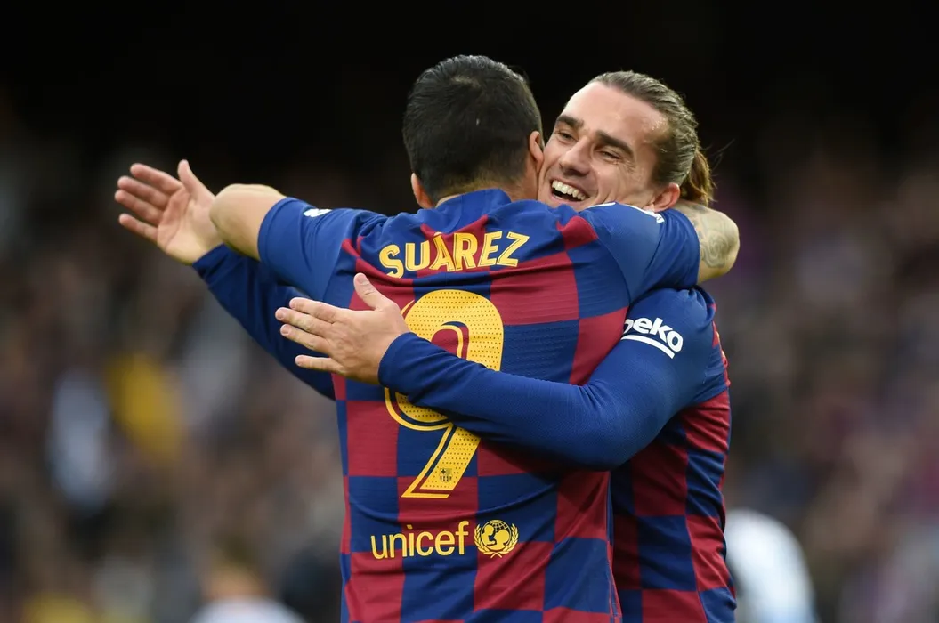 Antoine Griezmann of FC Barcelona celebrates his goalAntoine Griezmann of FC Barcelona celebrates his goal with Luis Suarez