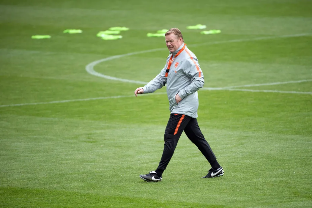 23 March 2019, Netherlands, Zeist: Netherlands manager Ronald Koeman leads a training session on bicycles for Netherlands national soccer team ahead of Sunday's UEFA European Championship Qualifying soccer match against Germany. Photo: Federico Gambarini/dpa