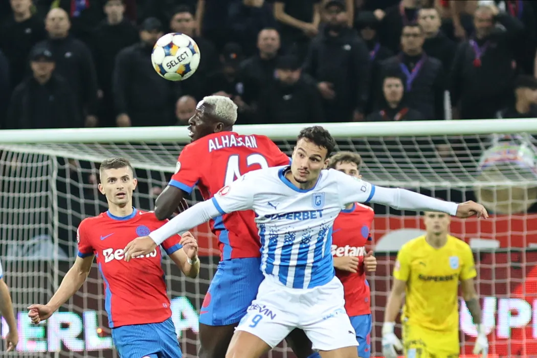 Florin Lucian Tănase, Baba Alhassan si Assad Al Islam Al Hamlawi in meciul dintre FCSB si Universitatea Craiova, contand pentru Superliga Superbet, desfasurat pe Arena Nationala din Bucuresti, duminica 5 octombrie 2025. © FOTO:Gheorghe Fluster/SPORT PICTURES
