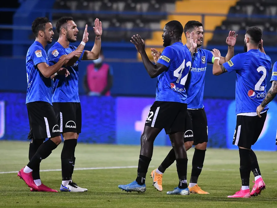 Bucurie a fotbalistilor de la Viitorul cu Damien Dylan Dussaut, Gabriel Cristian Iancu, Virgil Eugen Ghita si Kevin Luckassen dupa un gol marcat in meciul de fotbal dintre FC Viitorul Constanta si Astra Giurgiu, contand pentru Liga 1 Casa Pariurilor, desfasurat fara spectatori pe Stadionul Central al Academiei Gheorghe Hagi din Ovidiu, sambata 26 septembrie 2020. © FOTO:Razvan Pasarica/SPORT PICTURES