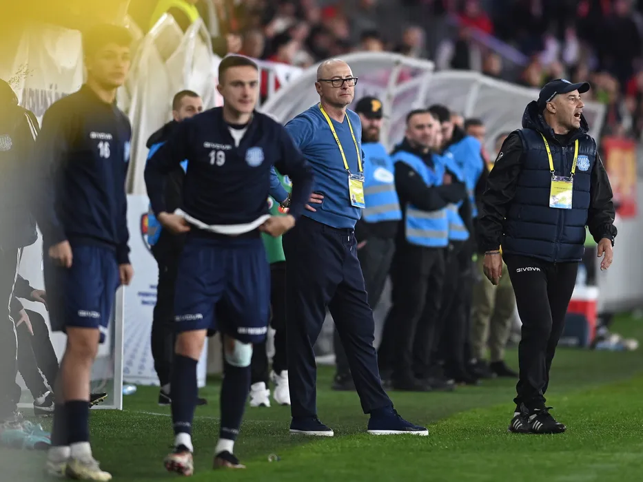 Leo Grozavu reactioneaza in meciul de fotbal dintre Dinamo Bucuresti si Politehnica Iasi, contand pentru Play-off-ul Ligii a-2-a, desfasurat pe Stadionul National Arcul de Triumf din Bucuresti, marti 25 aprilie 2023. © FOTO:Razvan Pasarica/SPORT PICTURES