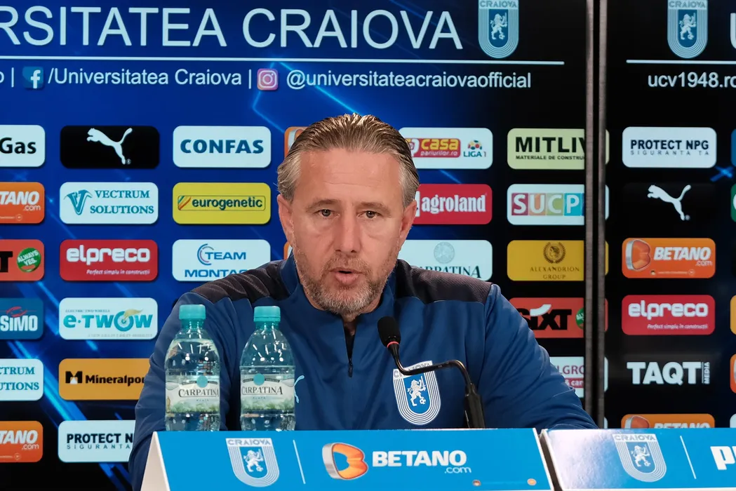 Laurentiu Reghecampf antrenorul echipei de fotbal Universitatea Craiova sustine o conferinta de presa la stadion Ion Oblemenco din Craiova vineri 22 aprilie 2022 . REMUS BADEA / MEDIAFAX FOTO