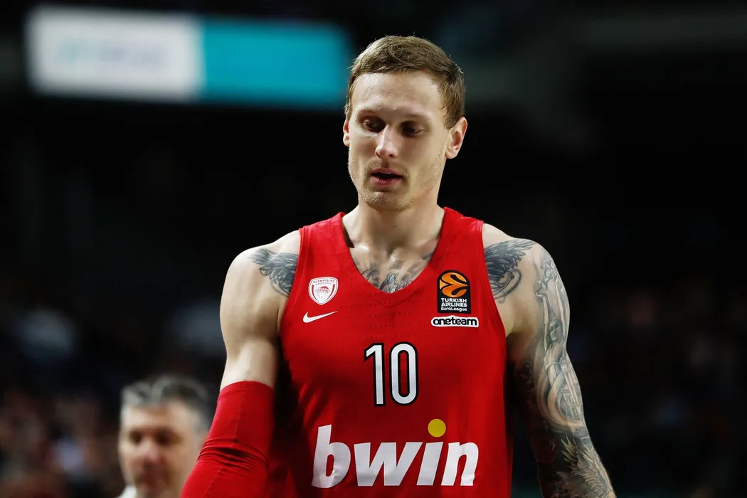 Janis Timma of Olympiacos during the Turkish Airline EuroLeague basketball match between Real Madrid and Olympiacos Piraeus on January 10, 2019 at Wizink Center stadium in Madrid, Spain - Photo Oscar J Barroso / Spain DPPI / DPPI,Image: 407061883, License: Rights-managed, Restrictions: Hungary Out, Model Release: no