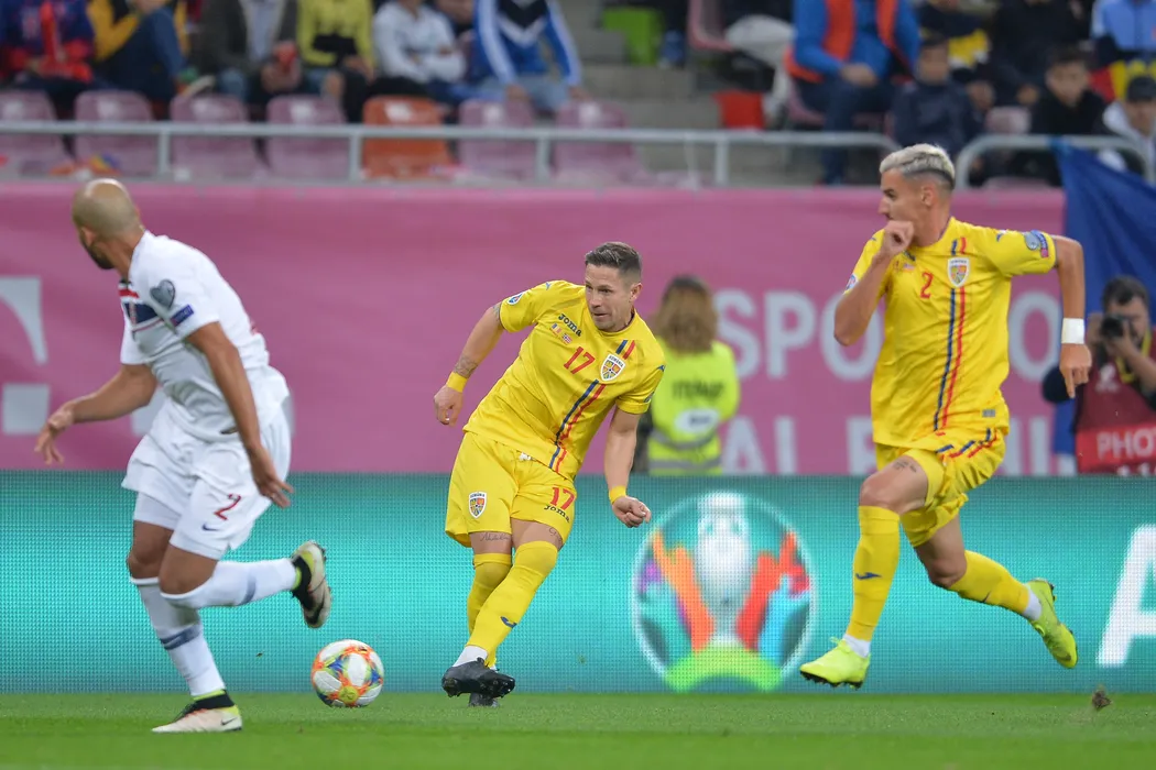 Ciprian Deac (C), de la nationala Romaniei, suteaza in timpul meciului de fotbal contra selectionatei Norvegiei, din Grupa F a preliminariilor Euro 2020, disputat pe Arena Nationala din Bucuresti, marti, 15 octombrie 2019. ALEXANDRU DOBRE / MEDIAFAX FOTO