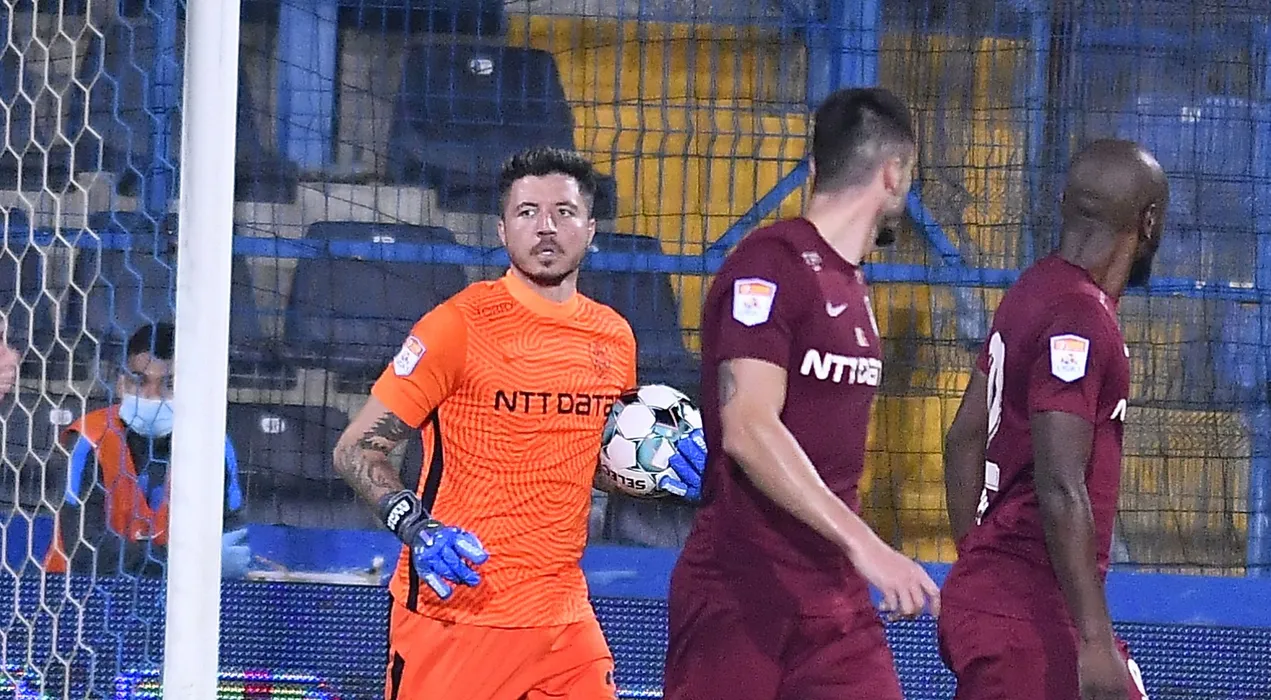 Cristian Balgradean si Mario Camora in meciul de fotbal dintre FC Viitorul Constanta si CFR Cluj, contand pentru Liga 1 Casa Pariurilor, desfasurat fara spectatori pe Stadionul Central al Academiei Gheorghe Hagi din Ovidiu, duminica 4 octombrie 2020. © FOTO:Razvan Pasarica/SPORT PICTURES