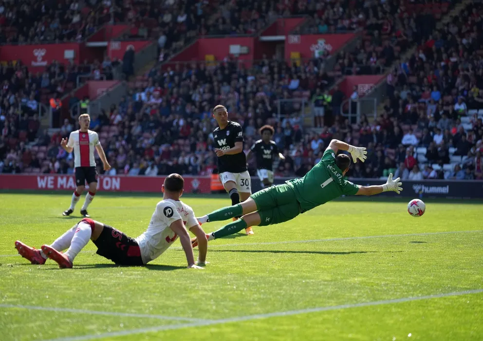 Southampton v Fulham, Premier League, Football, St Marys Stadium, Southampton, UK - 13 May 2023,Image: 775611428, License: Rights-managed, Restrictions: EDITORIAL USE ONLY No use with unauthorised audio, video, data, fixture lists (outside the EU), club/league logos or "live" services. Online in-match use limited to 45 images (+15 in extra time). No use to emulate moving images. No use in betting, games or, Model Release: no