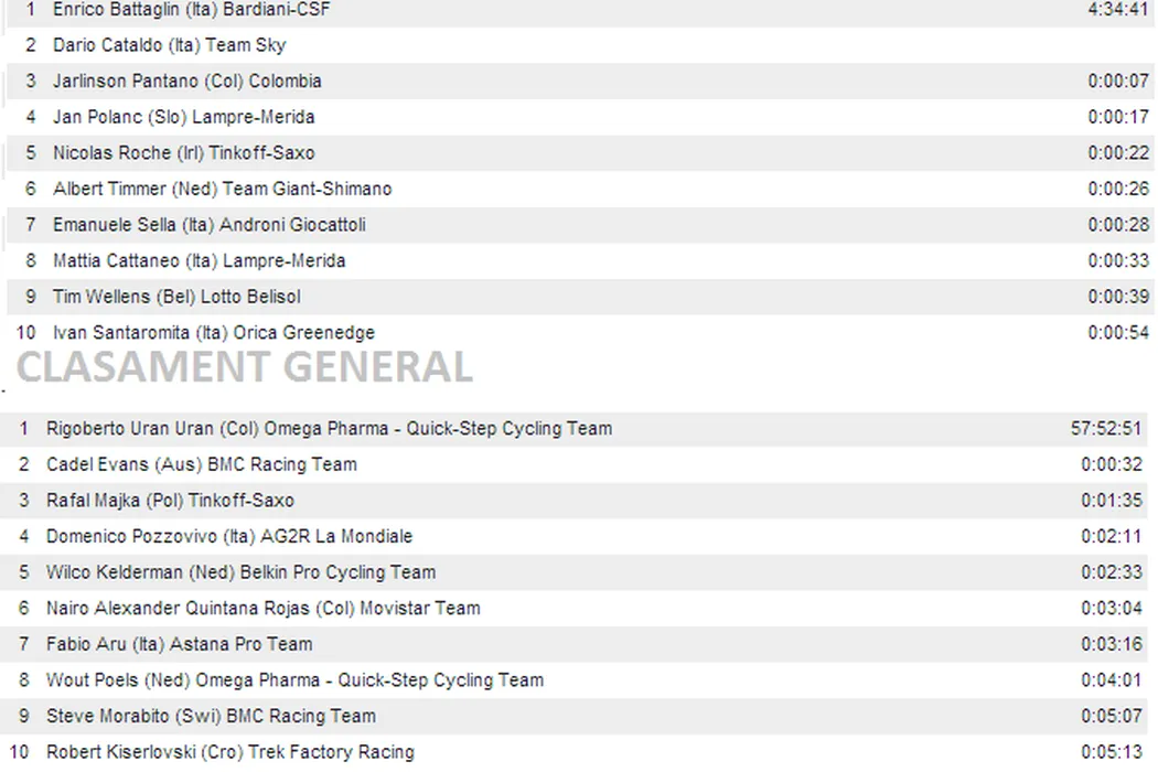 S-a bătut până în ultimul metru. Battaglin, învingător neașteptat la Oropa. Uran a pierdut secunde importante față de contracandidații la victoria finală