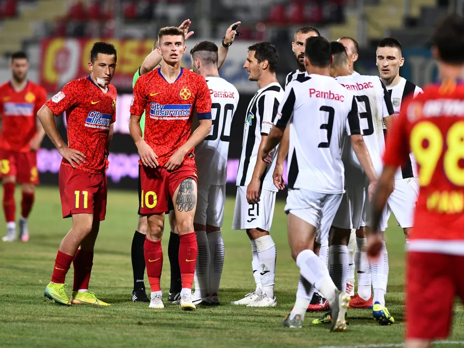 Olimpiu Morutan, Florin Tanase si Ljubjan Crepulja in meciul de fotbal dintre Astra Giurgiu si FCSB, contand pentru play-off-ul Ligii 1 Casa Pariurilor, disputat fara spectatori pe Stadionul Marin Anastasovici din Giurgiu, luni 29 iunie 2020. © FOTO:Razvan Pasarica/SPORT PICTURES