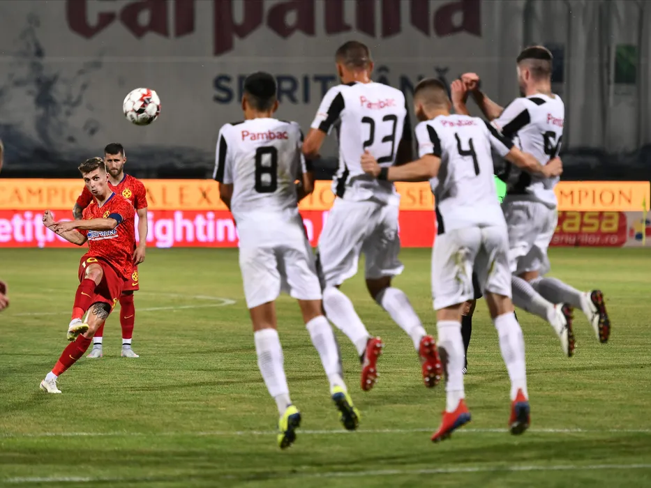 Florin Tanase executa o lovitura libera in meciul de fotbal dintre Astra Giurgiu si FCSB, contand pentru play-off-ul Ligii 1 Casa Pariurilor, disputat fara spectatori pe Stadionul Marin Anastasovici din Giurgiu, luni 29 iunie 2020. © FOTO:Razvan Pasarica/SPORT PICTURES