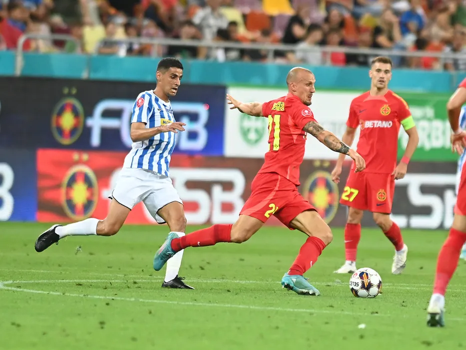 Gabriel Cristian Vasvari si Vlad Iulian Chiriches in meciul de fotbal dintre FCSB si Politehnica Iasi, din cadrul Superligii Superbet, desfasurat pe Arena Nationala din Bucuresti, duminica 20 august 2023. © FOTO:Razvan Pasarica/SPORT PICTURES