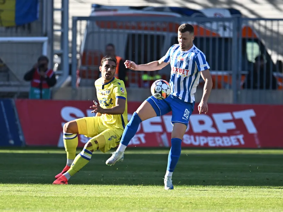 Marian Fernando Huja si Florian Kamberi in meciul de fotbal dintre Petrolul Ploiesti si Politehnica Iasi, din cadrul Superligii Superbet, desfasurat pe Stadionul Ilie Oana din Ploiesti, sambata 26 octombrie 2024. © FOTO:Razvan Pasarica/SPORT PICTURES