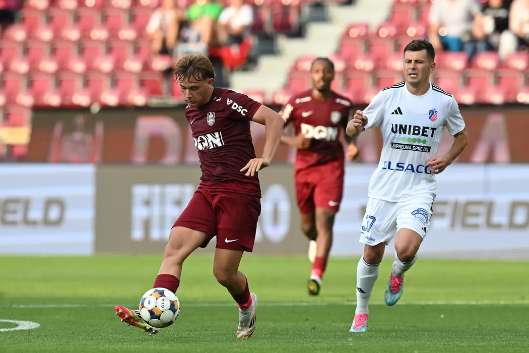 Lorenzo Biliboc si Mihai Catalin Bordeianu in meciul de fotbal dintre FC CFR 1907 Cluj si FC Botosani, contand pentru Superliga Superbet, desfasurat pe Stadionul Dr.Constantin Radulescu din Cluj-Napoca, duminica 17 august 2025. © FOTO:Flaviu Buboi/SPORT PICTURES