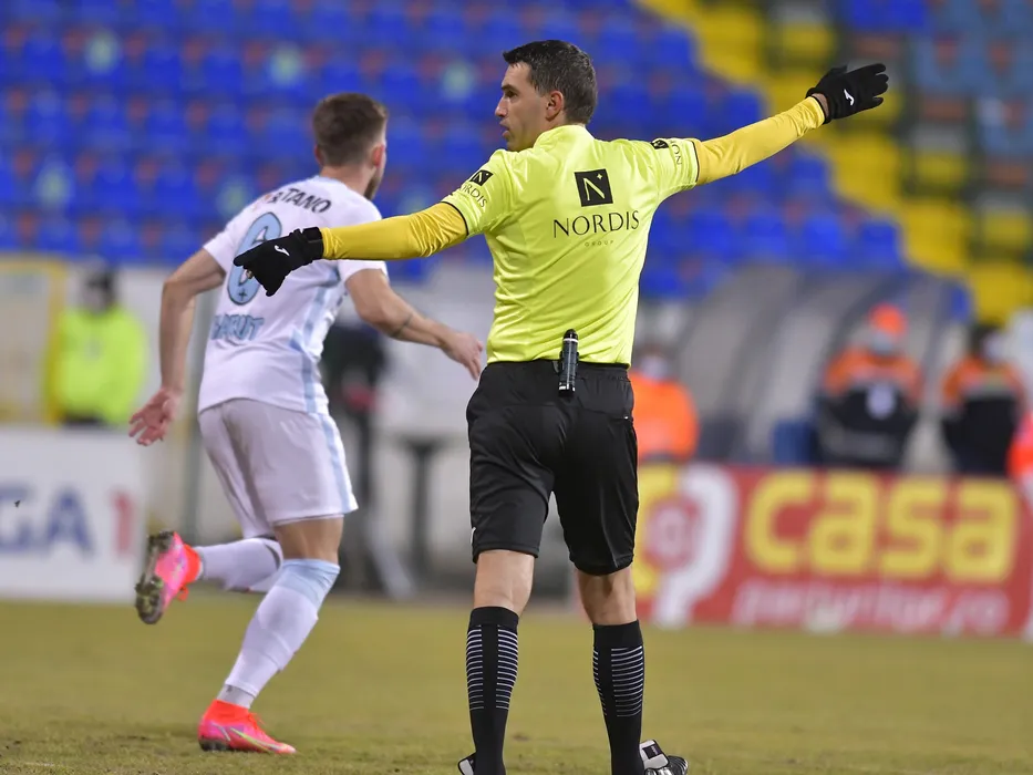 Arbitrul central Ovidiu Hategan in meciul de fotbal dintre FC Botosani si FCSB, contand pentru Liga 1 Casa Pariurilor, desfasurat fara spectatori pe Stadionul Municipal din Botosani, duminica 28 februarie 2021. © FOTO:Razvan Pasarica/SPORT PICTURES