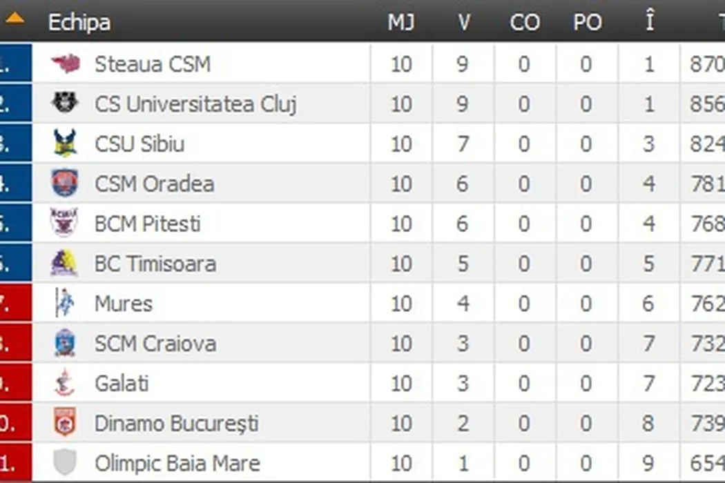 S-a încheiat turul Ligii Naționale de baschet masculin: Steaua, pe primul loc, la egalitate de puncte cu U-BT Cluj! Vezi clasamentul