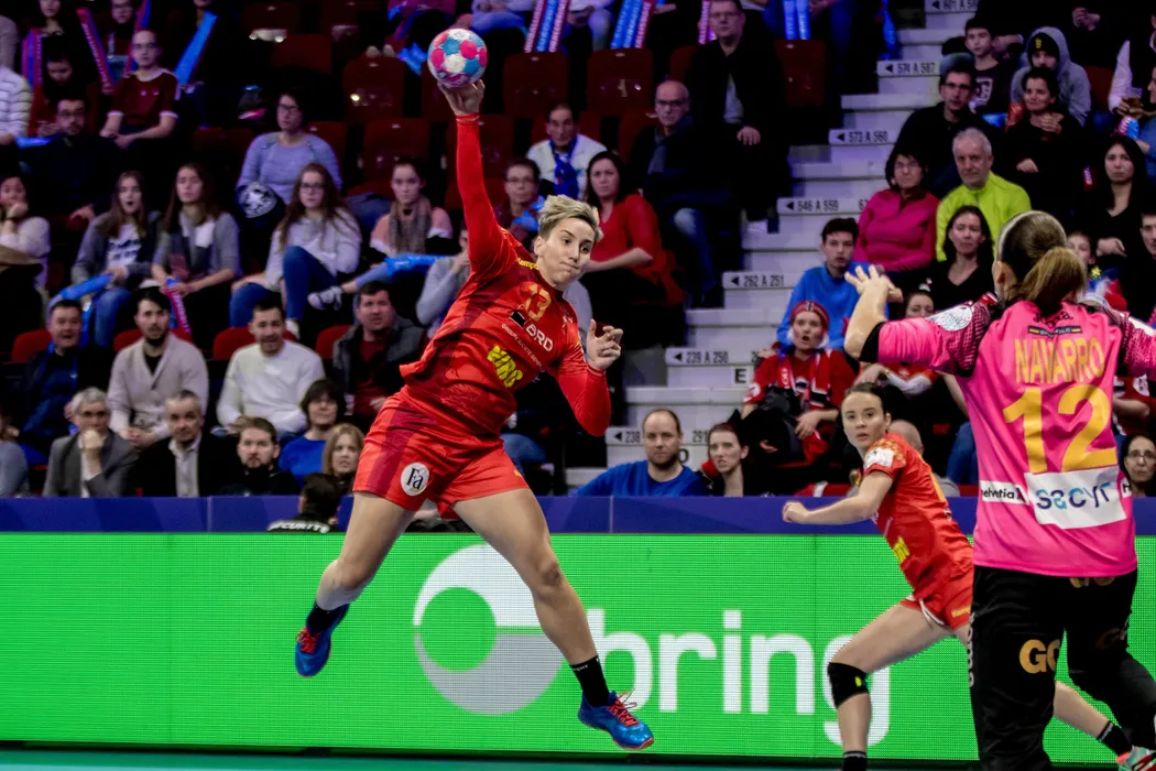 Cristina Laslo (S), de la nationala de handbal feminin a Romaniei, arunca la poarta, in partida contra selectionatei Spaniei din cadrul Campionatului European de handbal, disputat la Nancy, marti, 11 decembrie 2018. Nationala feminina de handbal a Romaniei a castigat, marti seara, in fata Spaniei, cu scorul de 27-25, in cel de-al doilea meci din Grupa principala II a Campionatului European de handbal feminin - EHF EURO 2018 din Franta. SORIN PANA / MEDIAFAX FOTO