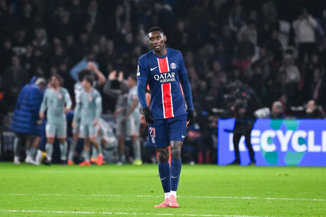 Randal Kolo Muani ( 23 - PSG ) looks dejected during the UEFA Champions League match between Paris Saint Germain and Atletico de Madrid at Parc Des Princes on November 06, 2024 in Paris, France. ( Photo by federico pestellini / panoramic ) -,Image: 931431708, License: Rights-managed, Restrictions: , Model Release: no