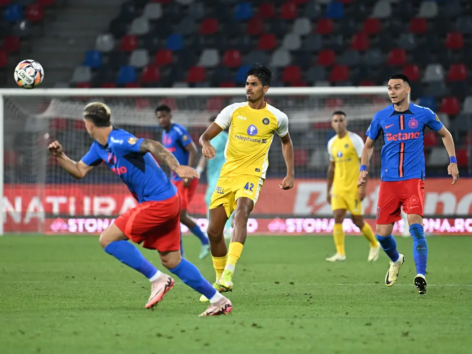 Dor Peretz si Adrian Gheorghe Șut in meciul dintre FCSB si Maccabi Tel Aviv FC, contand pentru Preliminariile Ligii Campionilor, desfasurat pe Stadionul Steaua-Ghencea din Bucuresti, marti 23 iulie 2024. © FOTO:Razvan Pasarica/SPORT PICTURES