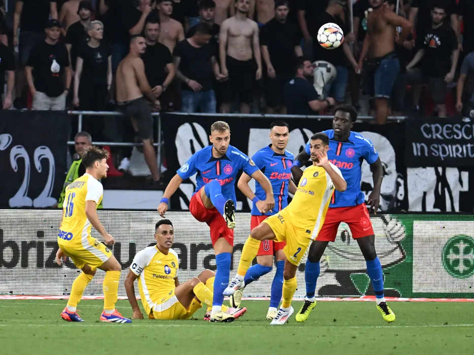 Gavriel Kanichowsky, Dor Peretz, Mihai Daniel Lixandru, Eran Zahavi, Joyskim Aurelien Dawa Tchakonte si Adrian Gheorghe Șut in meciul dintre FCSB si Maccabi Tel Aviv FC, contand pentru Preliminariile Ligii Campionilor, desfasurat pe Stadionul Steaua-Ghencea din Bucuresti, marti 23 iulie 2024. © FOTO:Razvan Pasarica/SPORT PICTURES
