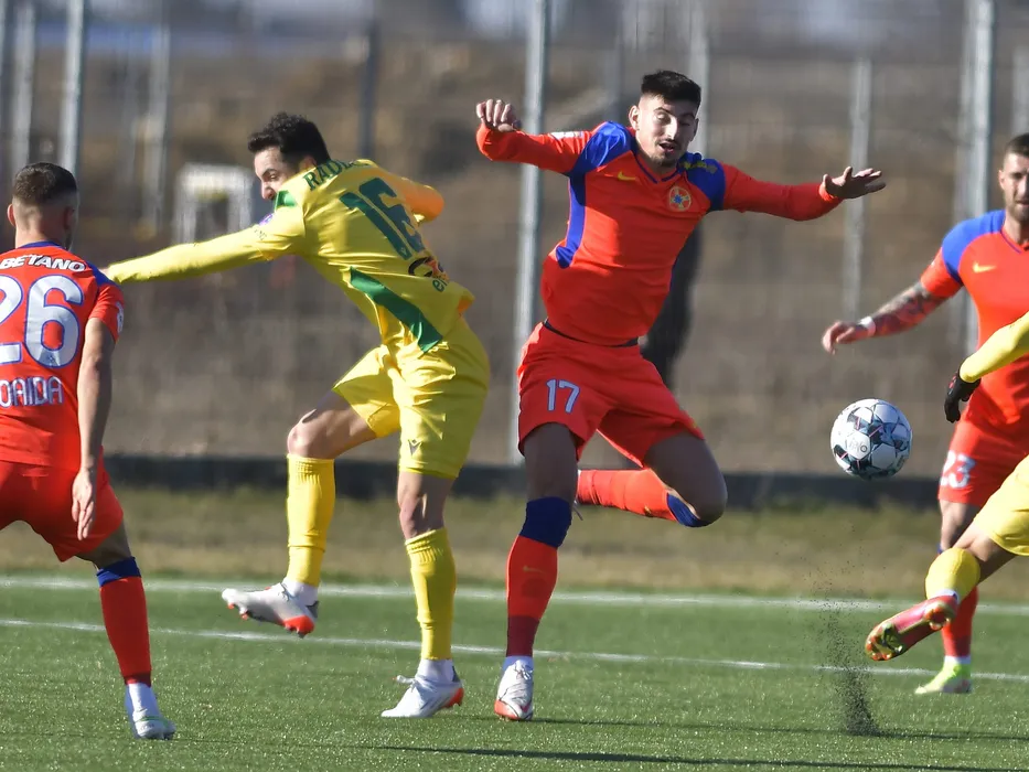 Laurentiu Ionut Radescu si Iulian Lucian Cristea in meciul amical de fotbal dintre FCSB si CS Mioveni, desfasurat la Centrul National de Fotbal de la Buftea, sambata 15 ianuarie 2022. © FOTO:Razvan Pasarica/SPORT PICTURES