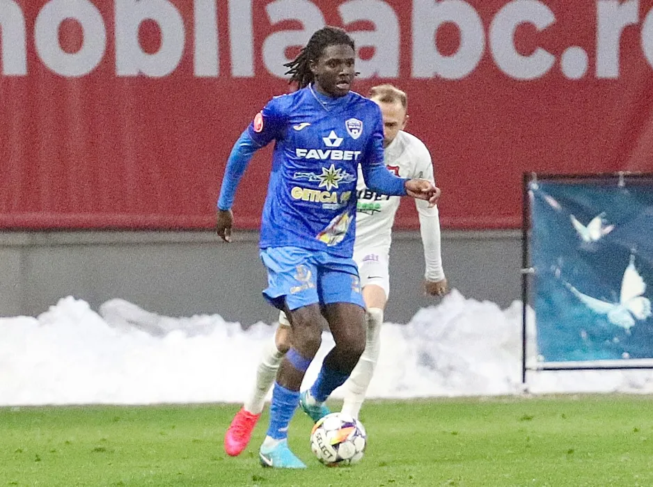 Tavares David Jose Gomes Oliveira in meciul de fotbal dintre AFC Hermannstadt Sibiu si Gloria Buzau, contand petru Superliga Superbet, desfasurat pe Stadionul Municipal din Sibiu, vineri 21 februarie 2025. © FOTO: Valentin Macrea/SPORT PICTURES